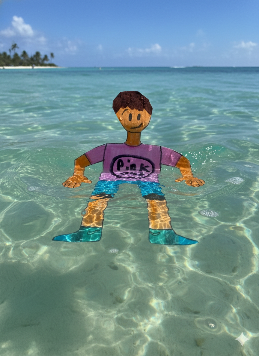 If you’ve ever seen a pink shirt floating through the crystal-clear waters of the tropics, you’ve probably met the world’s most buoyant artist. Known for his minimalist style and maximum love for the sea, he’s a creator who literally lives in his work.